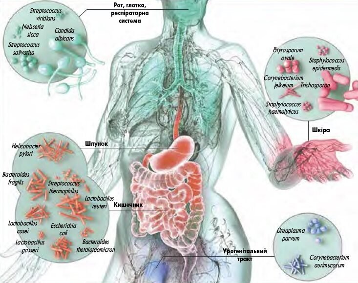 Найбільша кількість мікроорганізмів знаходиться в кишечнику, але вони також населяють шкіру, рот, ніс та інші частини тіла. Кожна людина має унікальний мікробіом, який настільки індивідуальний, що його можна використовувати для ідентифікації особи, подібно до відбитків пальців.