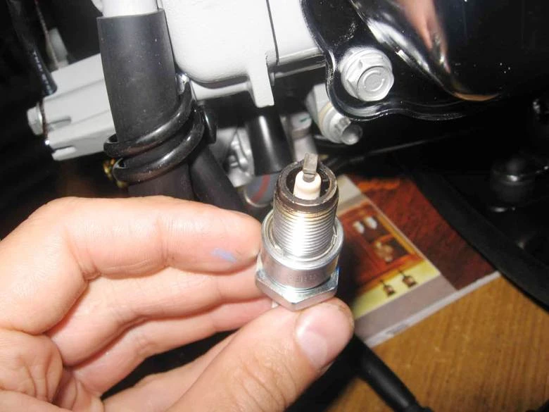 - Викручуємо стару свічку. Одягніть свічковий ключ на свічку і повертайте його проти годинникової стрілки. Спочатку може йти туго, не переживайте, це нормально. Після кількох обертів свічка піде легше. Викручуйте повністю і обережно виймайте разом із ключем.